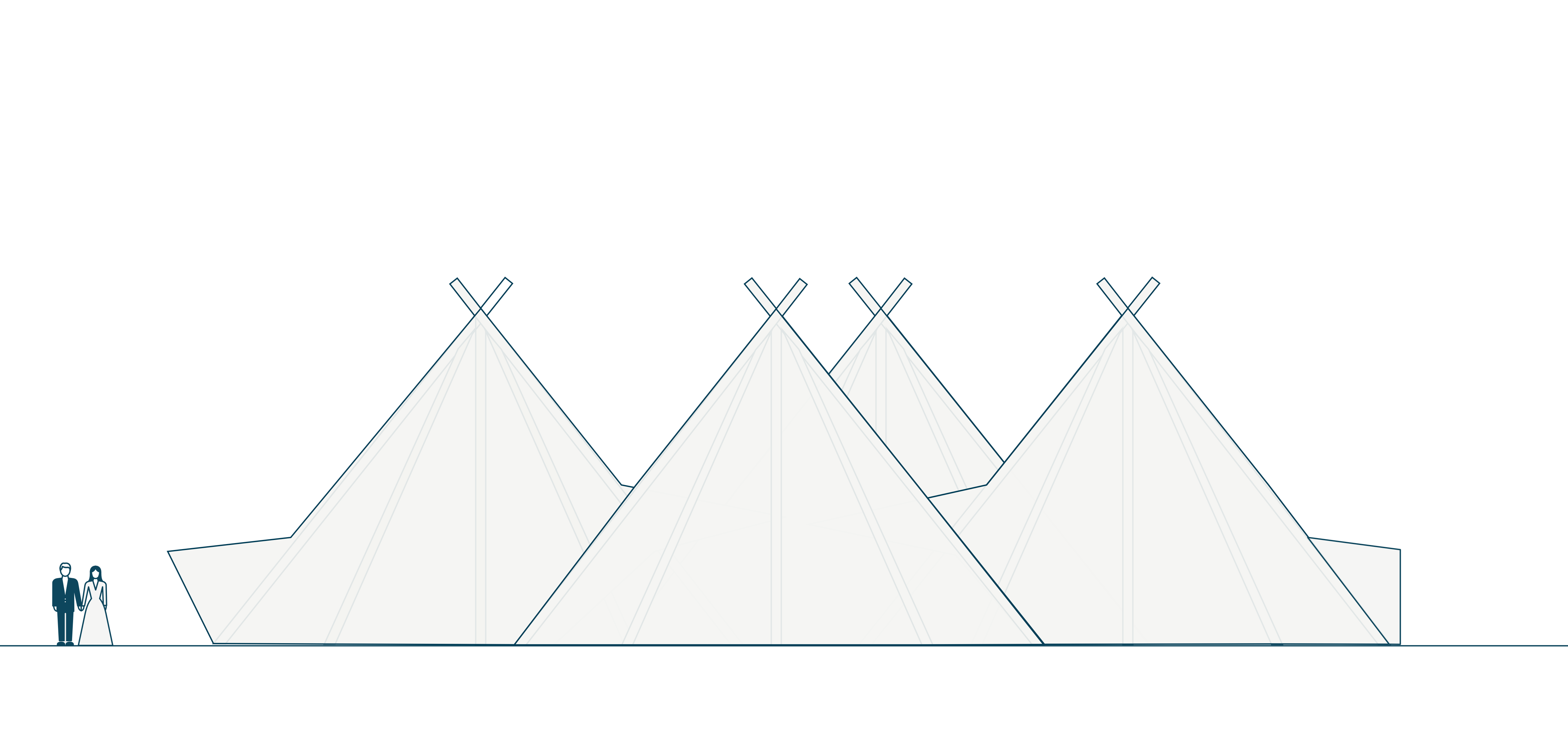 Four tipis in a diamond formation is a stunning tipi construction that won't fail to impress your guests. Great in any weather and for any occasion, the Cotswold suits a larger gathering, 140-160 people for a celebration.