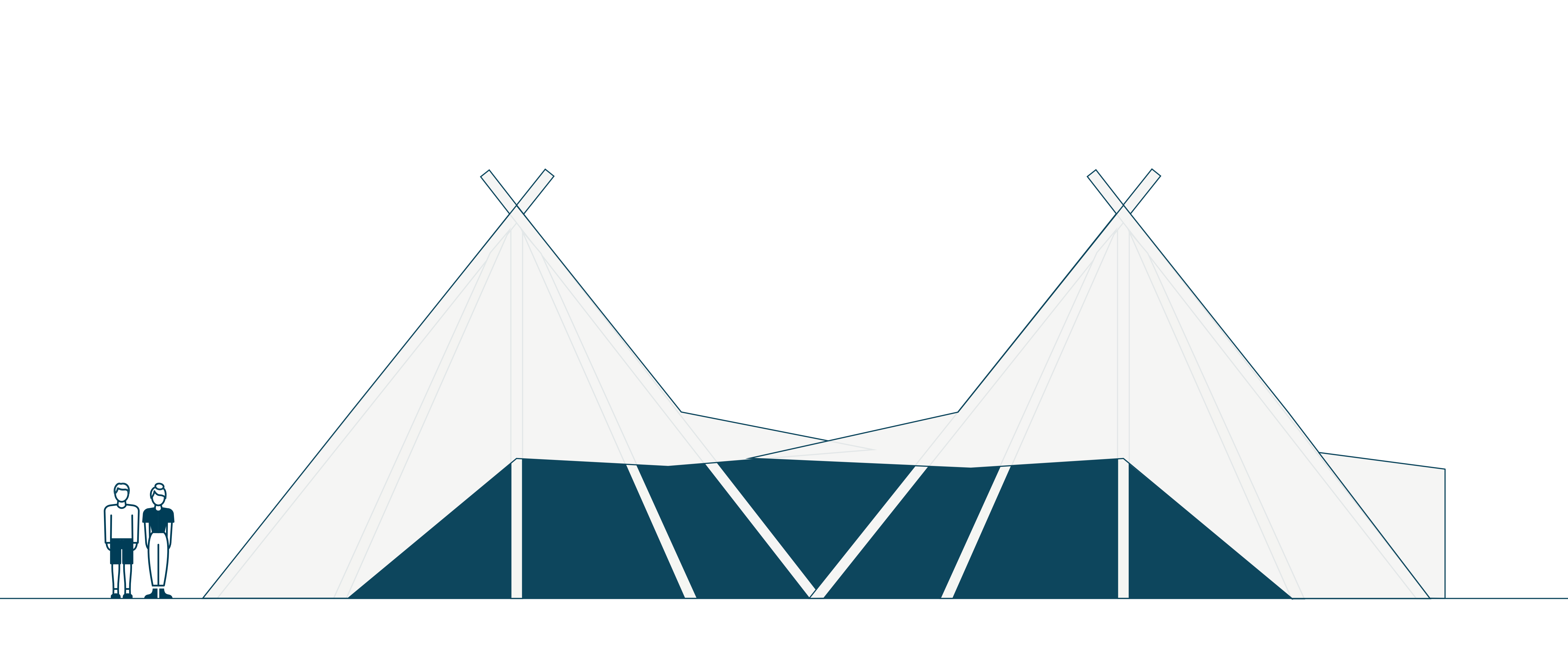 Two tipis linked together to form one space, with an extended dance floor tipi, creating a generous stage area for a band or DJ.