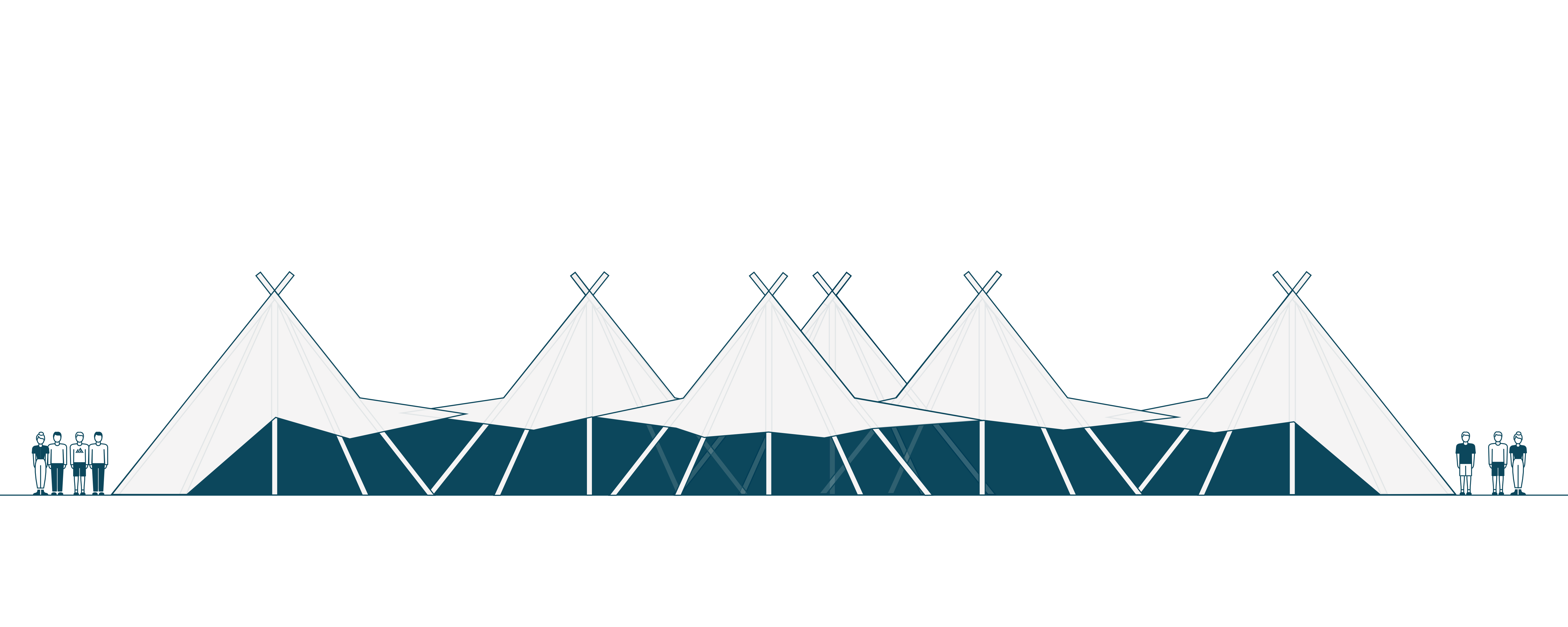 The front of the tipi is wide open to bring the outside in and to help with any bottlenecks as people come and go. The back of the tipis are closed down, but can be punctuated with access points via zip doors if needed. We can also link on multiple Catering Tents if a large kitchen area needs to be installed.