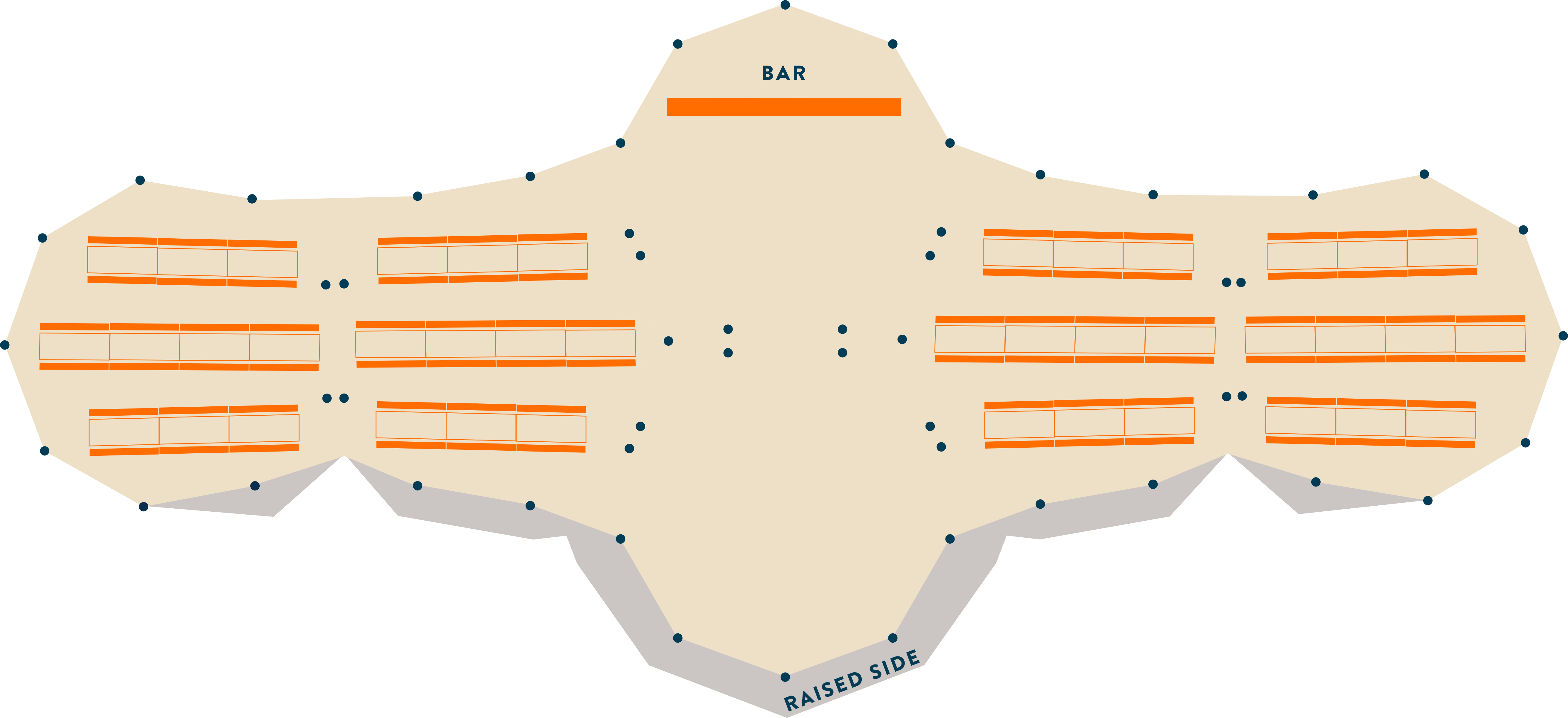 This Collection has banquet seating for up to 320 either side of a large bar, with plenty of space for the inevitable queues. Tables are banked up in long lines to make the most of the space and to get as many bums on benches as possible.