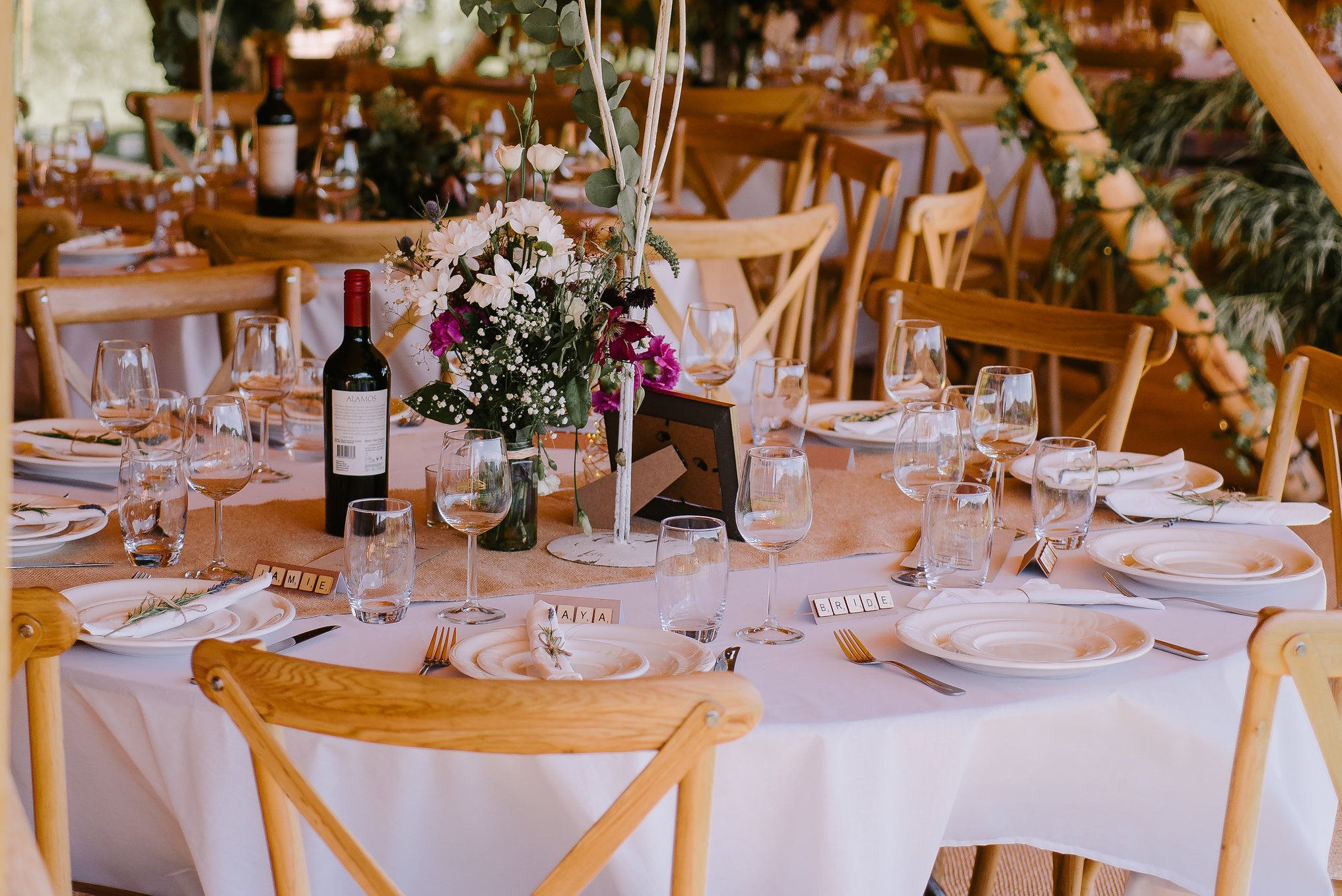 The industry standard 5ft 6in round trestle table, seating 8 guests very comfortably and 10 max.