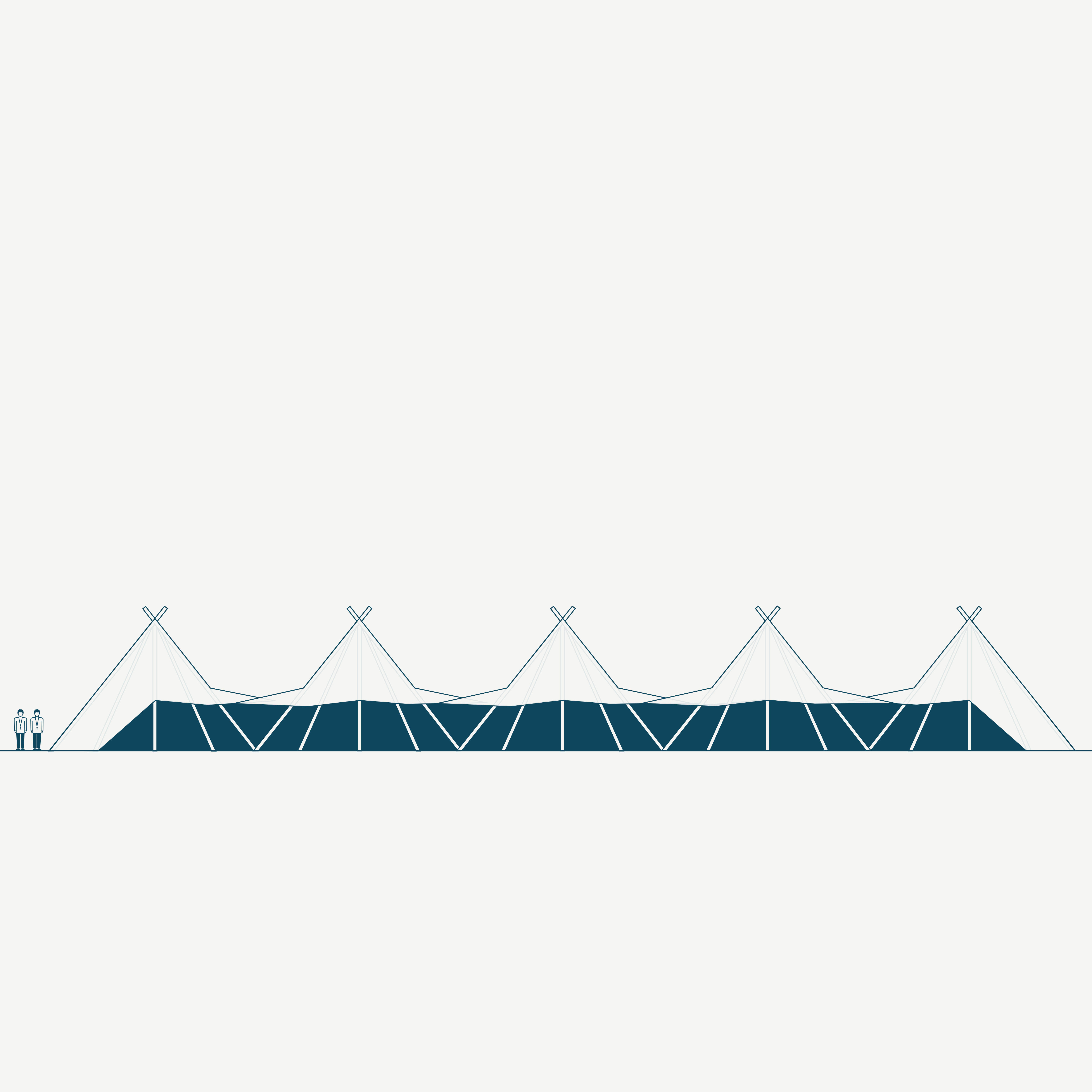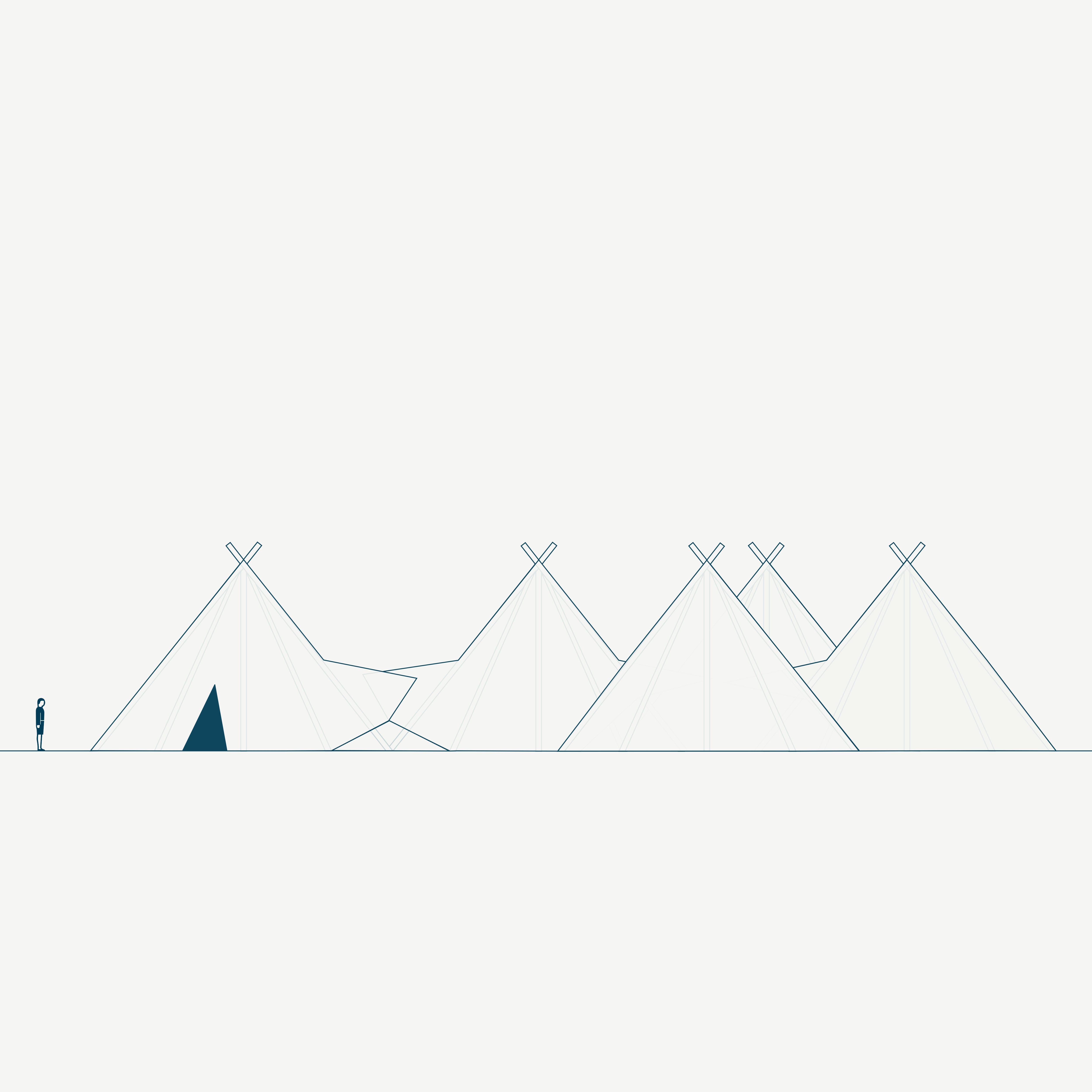 When deciding on a five tipi formation, you have the choice of structures that are long, with panoramic views and good indoor/outdoor spaces, ones that are more compact and grouped closer together, and some that do both. The more compact formations tend to be cosier and less reliant on good weather so ideal for the cooler months.
