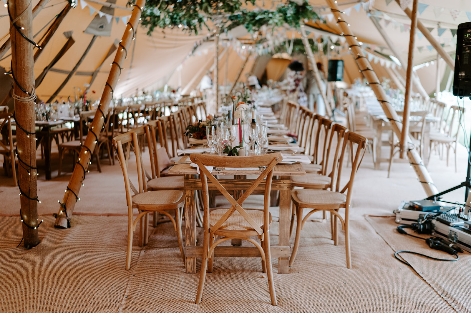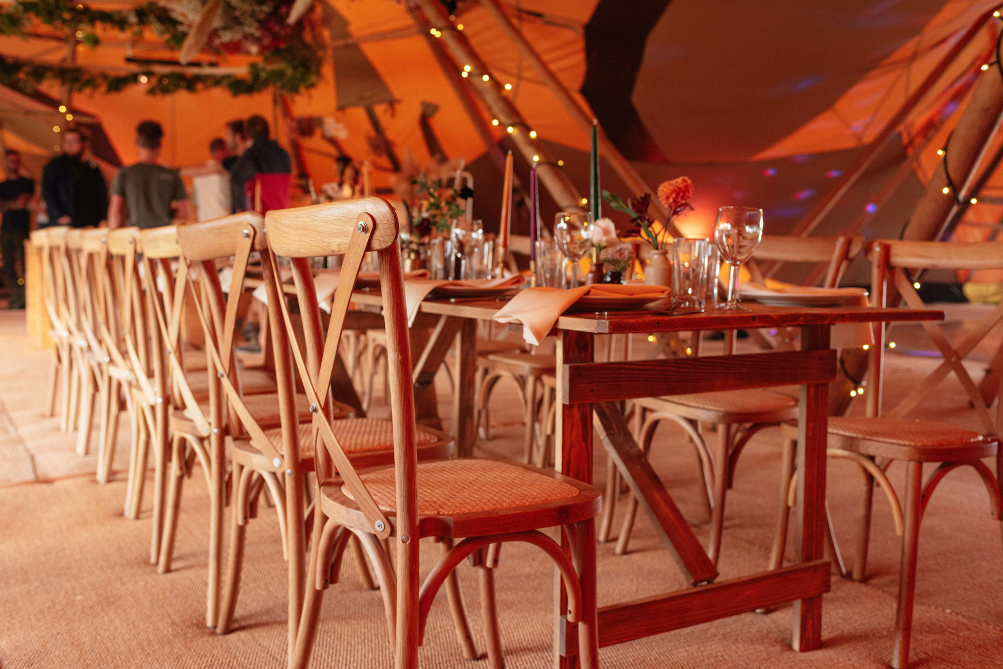 A formal dining chair with an informal finish. This chair has a high back and slightly padded rattan seat- perfect for long dinners or more formal occasions.