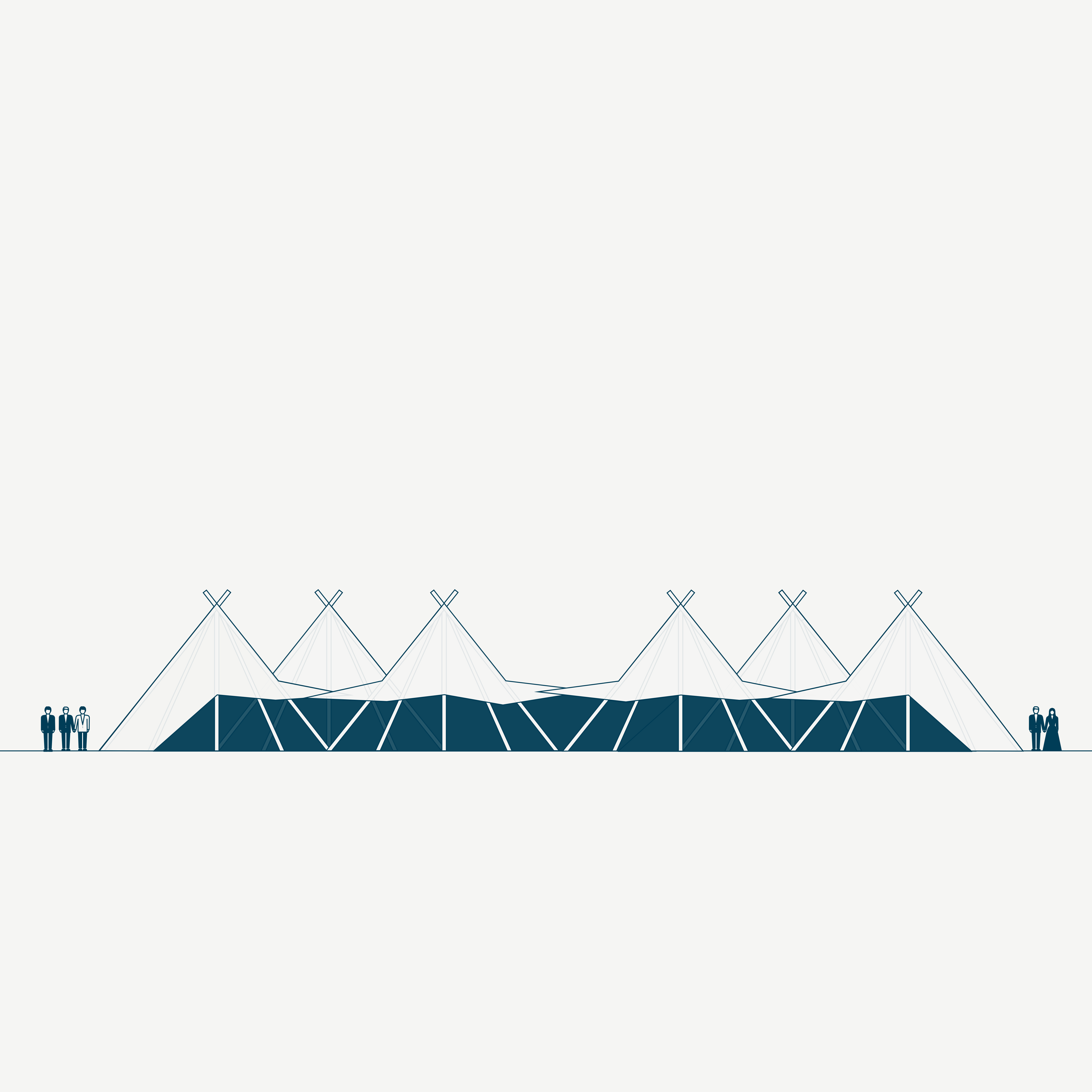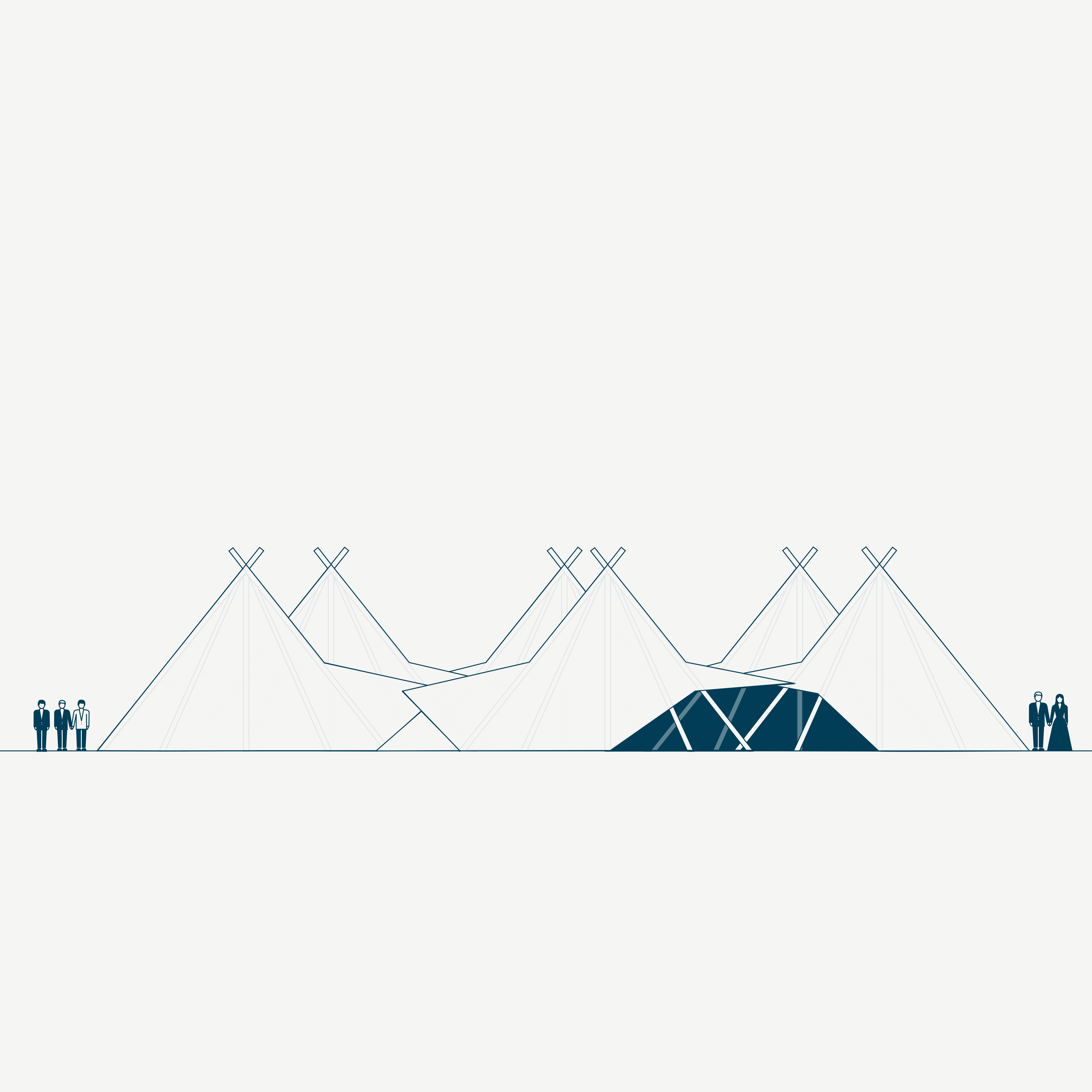 There are many ways to link six tipis, but the ultimate tipi formation is to have six linked in a circle with a courtyard clearing in the centre. To have a large open-air space in the middle of a tent that can dine 450 people is rather special and unlike any other event tent.